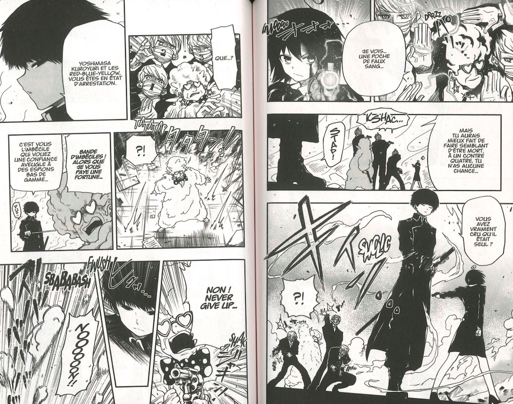 Histoire de ne pas rester en vase clot avec le malaisant Kyôichirû, le mangaka nous fait très vite découvrir de nouveaux antagonistes : si l’on passe rapidement sur Hatoda -qui tient juste lieu de bouffon d’introduction-, le duo d’agents secrets du gouvernement Sui Aoi & Ôga Inugami est lui nettement plus fouillé et intéressant et apporte à l’histoire générale de nouveaux adversaires très intéressants !