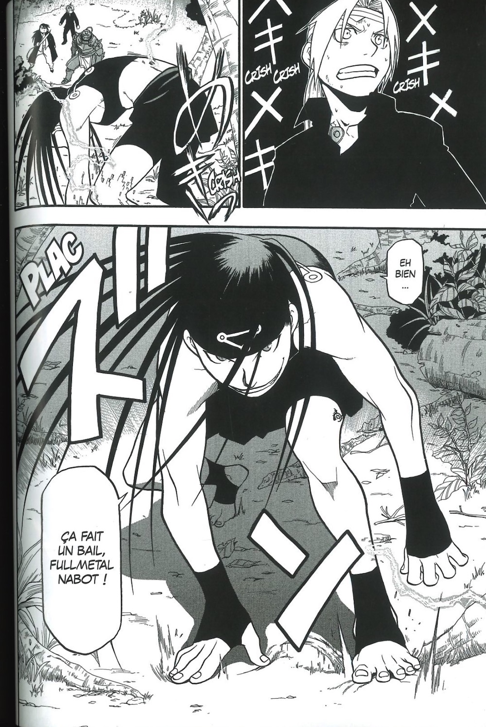King Bradley de son côté s’amuse de ses échecs… Enfin, il fait face à une adversité lui offrant piments & répondants ! « il y a 60 ans, on m'a fait prendre cette voie toute tracée afin de devenir King Bradley. Maintenant je suis à la tête de cet état comme l'avait prévu notre père et personne ne m'a mis de bâtons dans les roues ! Le scénario de ma vie était écrit à l'avance, je n'ai fait que le suivre … Mais maintenant, des obstacles se dressent sur la marche du destin : que ce soit le colonel Mustang, les Frères Elric ou ces visiteurs venus de l'étranger, tous ces jeunes gens tentent de nous imposer leur rythme alors que l'on se croyait plus rusé qu’eux. »