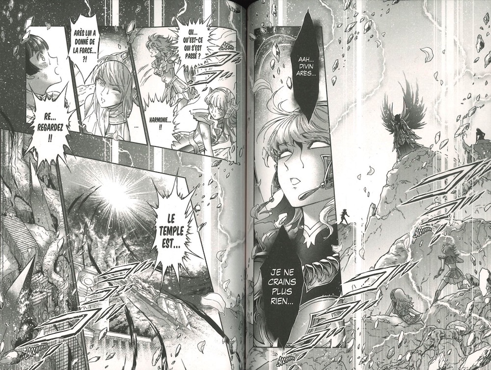 Le pinacle graphique de ce tome est sans conteste la cover du chapitre 76, représentant le Dieu Arès dans toute sa splendeur guerrière ! Notre mangaka s’est vraiment donnée sur ces chapitres, elle envoie du lourd à toutes les pages.