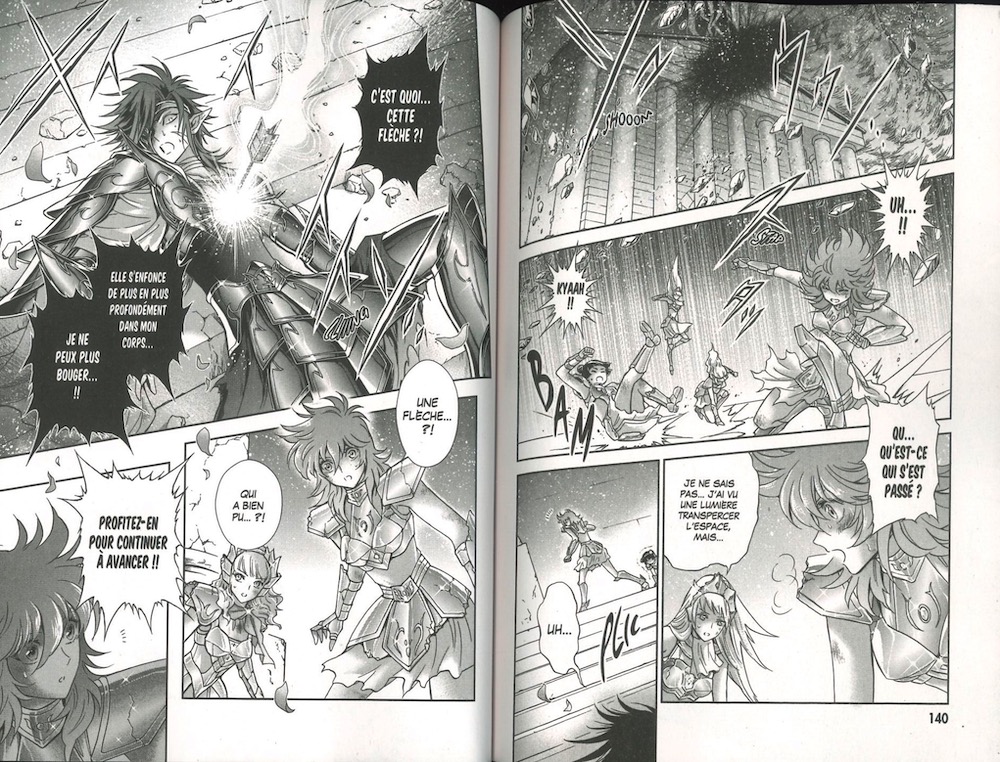 Pour autant, n’allez surtout pas imaginer que les chapitres suivants se tassent, que du contraire : la scène où les 2 ombres d’Arès se retrouvent est emplie d’une émotion qui sonne juste, tout comme celle où le jeune Lithos sauve les Saintia face à Phobos…