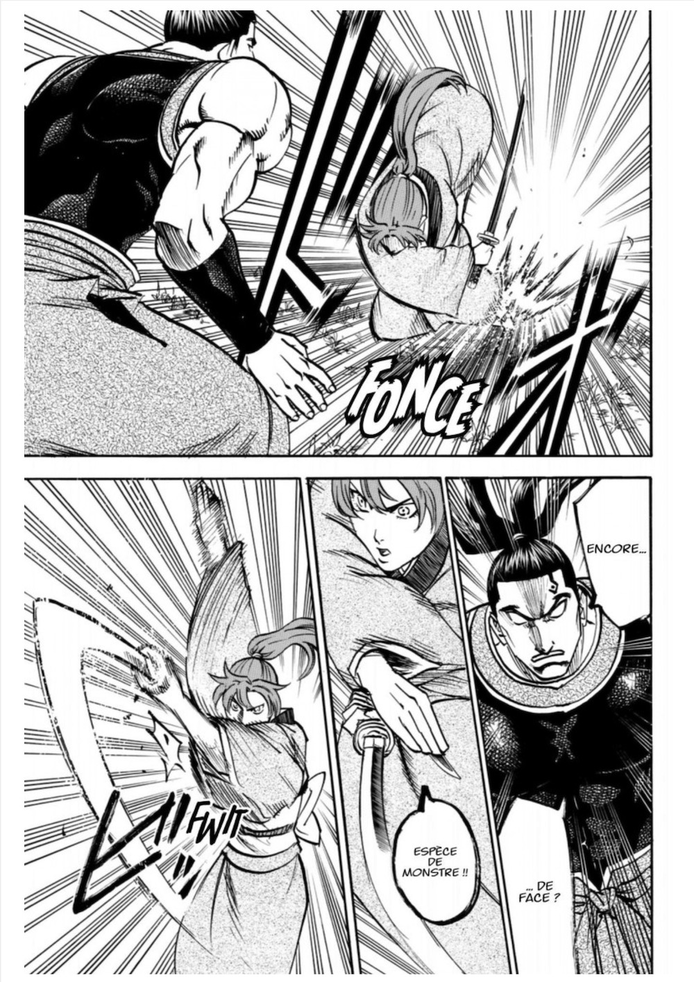 Un dernier point qui nous chagrine toujours dans ce type de récit : le rôle de la femme est toujours soit celui de s’élever pour atteindre le même statut que l’Homme, soit d’être prise pour enfanter… Alors que ce bon gros stéréotype bien primaire avait été épargné à Ran, il a fallu que l’auteur tombe dans cette facilité scénaristique ; on est sur à 100% qu’elle sera secourue par son mentor (dont elle est évidemment amoureuse) et qu’elle abandonnera ensuite le tournoi en ayant prouvé qu’elle fait partie des meilleures sabreuses…. Triste, triste…