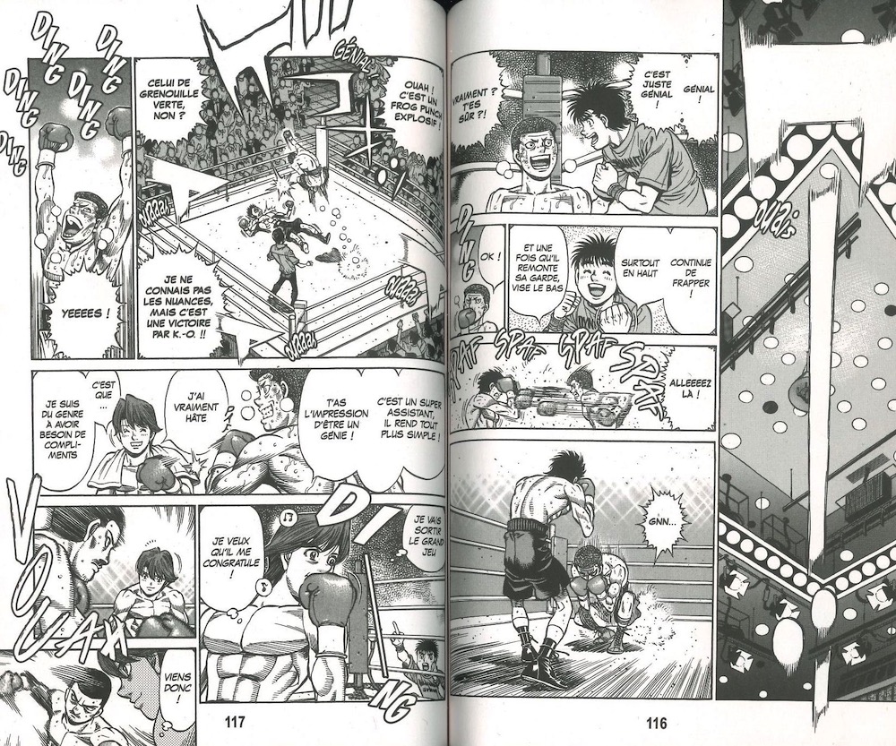 Plus on avance dans les chapitres, plus on se dit que la retraite du héros principal est partie pour durer. Petit-à-petit l’ami George nous fait accepter ce fait en nous présentant un Ippo Makunouchi de plus en plus investi dans sa nouvelle fonction de Coach.