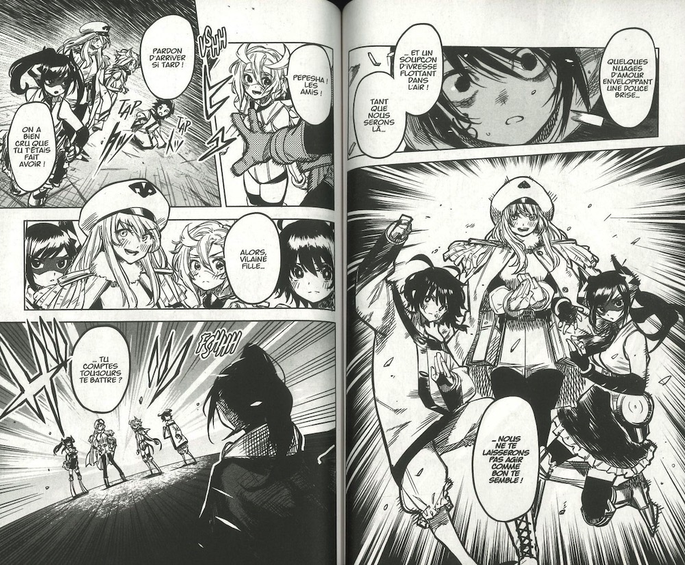 D’un autre côté, notre jeune mangaka ne révolutionne pas complètement le Game : on trouve encore et toujours des poncifs élimés tels que le pouvoir de l’Amour, de l’amitié, de l’entraide ou du sacrifice dans ses chapitres ; le dôme noir servant d’acccumulateur de terreur fait partie de ces artefacts tellement utilisés dans les shônen qu’on ne ressent aucune surprise quand il s’ouvre, mais ces stéréotypes passent très vite et s’avèrent au final peu nombreux dans ces 2 tomes…