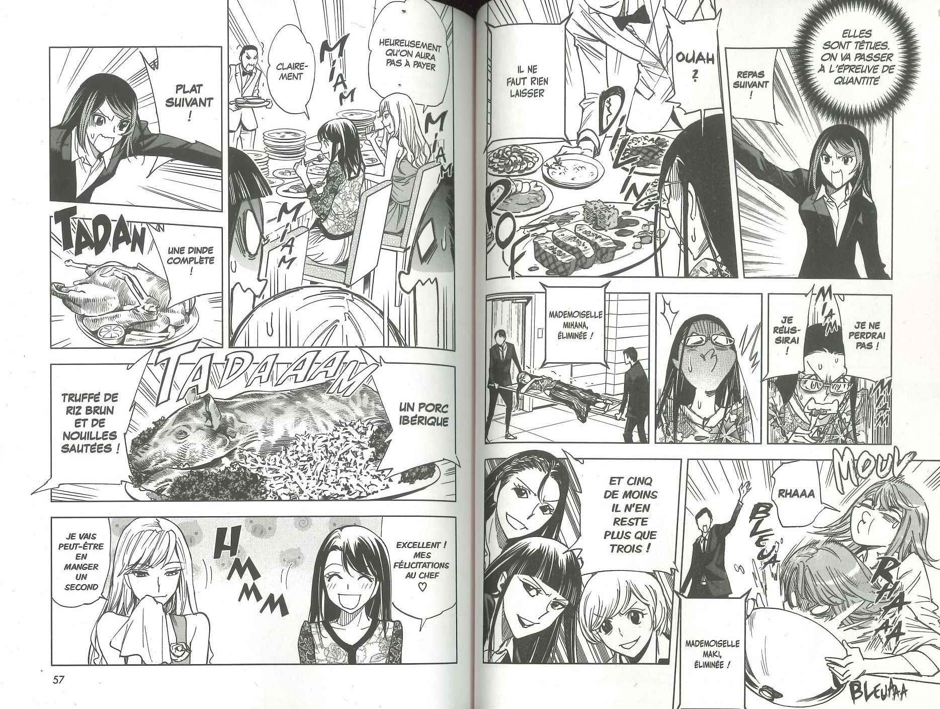 L’intrigue principale de ce tome se centre sur le Match-Making. Directement, l’auteur trouve le bon rythme narratif et parvient à nous intéresser à ce « concours ». Tout se passe bien pour nous, lecteur, on enchaine les pages des différents chapitres jusqu’à sa résolution finale… et le magnifique soufflé espéré c’est dégonflé d’un coup d’un seul ! Comment est-il possible que Kanô Yasuhiro nous ai promu une telle fin aussi peu intéressante ?!? Était-il malade, était-il pris de coliques, l’obligeant à rapidement conclure son intrigue ? Énorme déception donc pour nous !