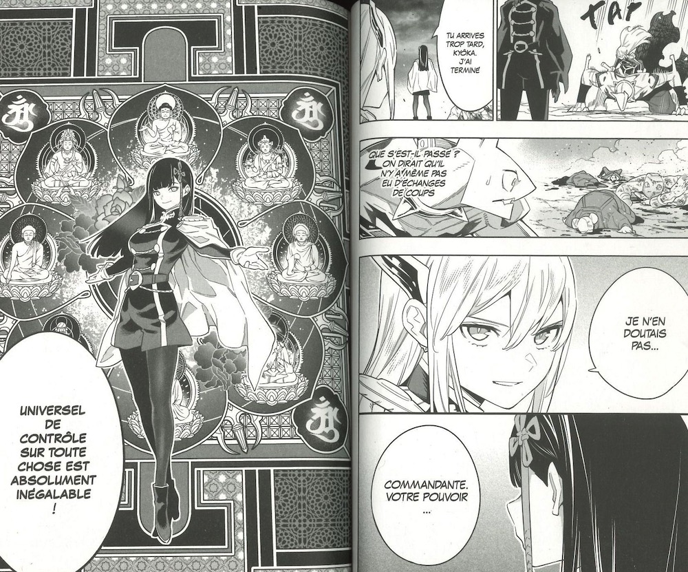 C’est Ren Yamashiro, la Commandante suprême des escadrons qui va se charger de cette attaque, et l’affaire sera très rapidement réglée. Pour autant, quels sont les desseins de cette formidable combattante, dont seule Kyôka semble pouvoir faire jeu égal ?