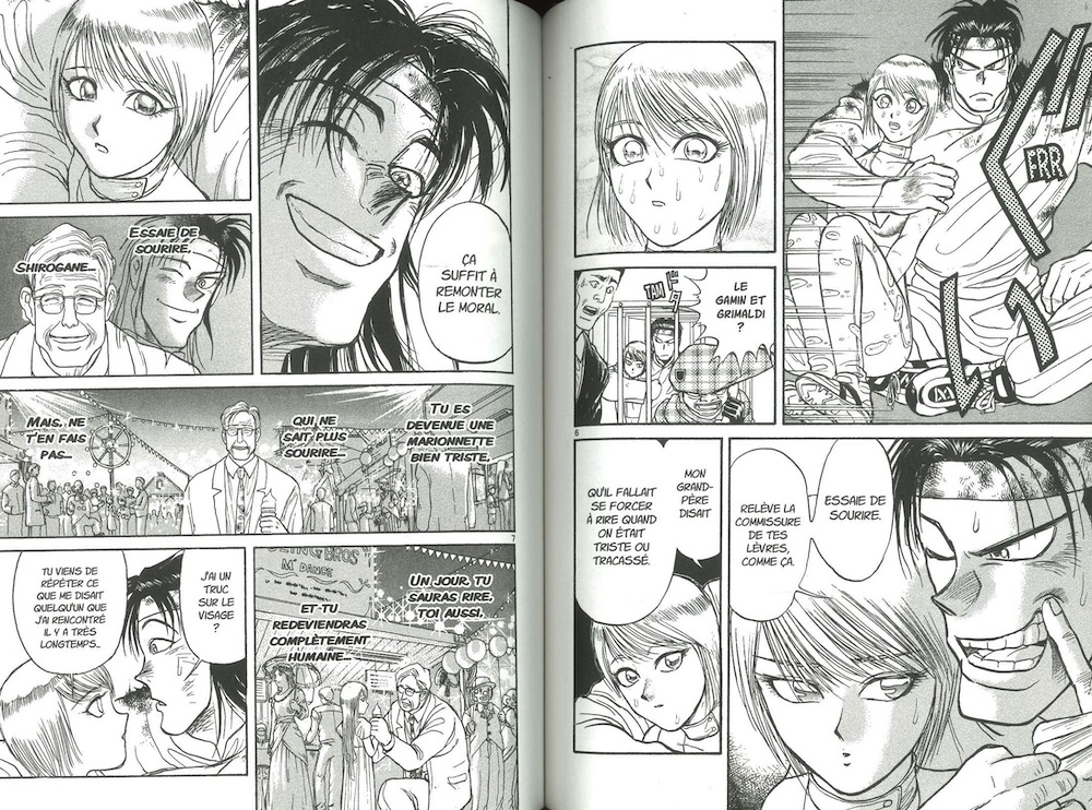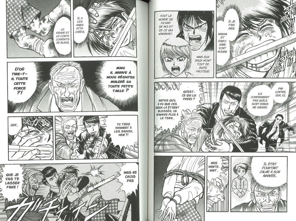 Et puis, il y a ce scénario…. Débuté comme une simple histoire de protection d’un pauvre enfant qui hérite d’une multinationale et devenant la cible d’ennemis enviant son héritage, le scénario se complexifiera très rapidement, dévoilant au fur et à mesure plein de petites pièces qui créeront sous nos yeux un gigantesque puzzle représentant une fresque dotée de détails d’une mécanique horlogère ! Un exemple ? Le mal dont souffre Narumi (la maladie de Zonapha) se révèlera être en lien direct avec le dessein principal du grand protagoniste de l’histoire… On ne voit rien venir, et au fil des pages, on se trouve entrainé de plus en plus profondément dans une intrigue riche en combats, en rires et en émotions.