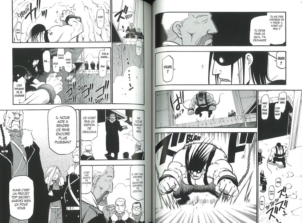 Hiromu Arakawa nous fait pénétrer ici doucement dans l’arc final, en dévoilant petit à petit son jeu maintenant que toutes les pièces sont en place et les enjeux enfin posés (la restauration de la Démocratie dans ce régime militaire corrompu par les Homonculus).
