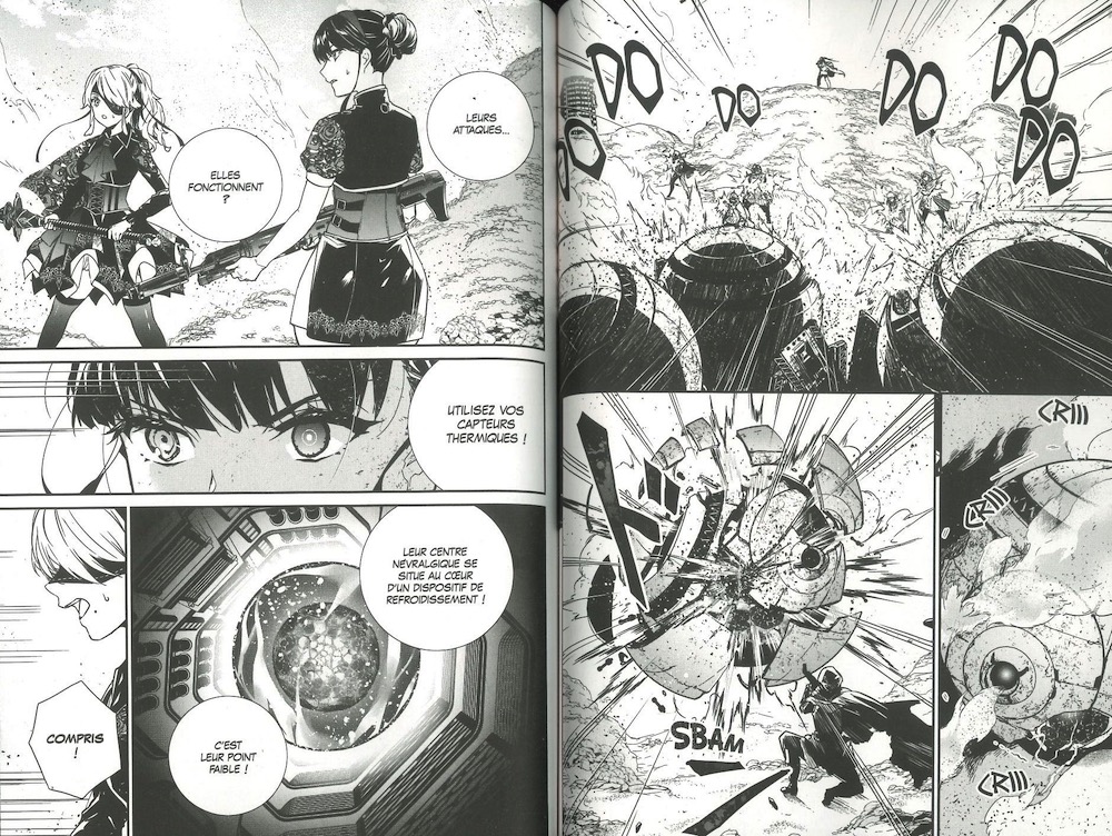On sent bien qu’il y a une histoire bien construite derrière ces guerrières et manifestement, les humains, réfugiés sur la Lune, ne font que peu de cas de la survie de leurs unités de combats artificielles abandonnées…