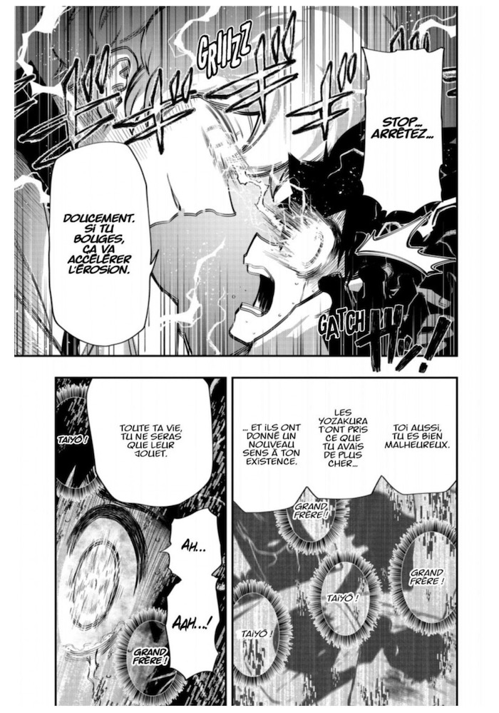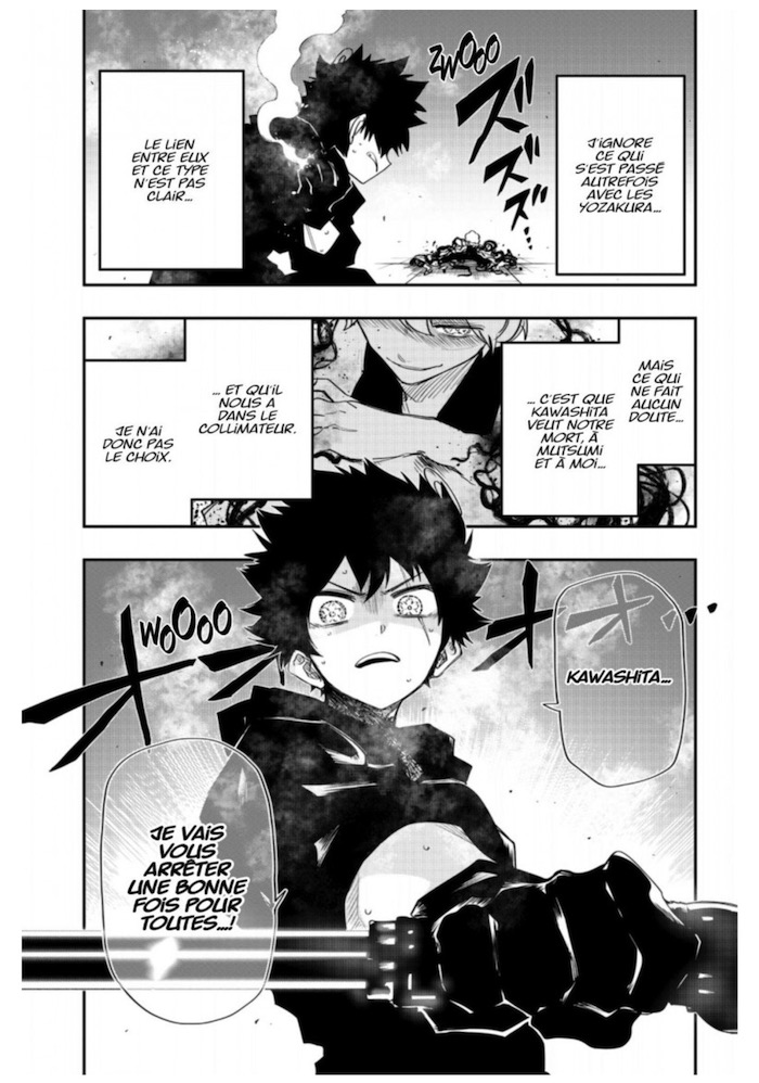 La confrontation Taiyô vs le professeur Kawashita bat son plein : notre jeune héros parvient à maitriser son ennemi mais ce dernier lui envoie alors une vision du passé : il découvre alors que le sujet principal des expérimentations du professeur était la 1ère cheffe des Yozakura, Tsubomi, dont le rêve absolu était de ne plus être qu’une personne normale !