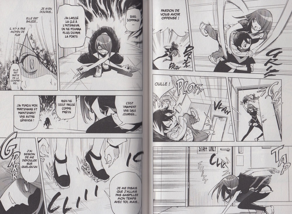 D’autre part, on regrettait dans le volume précédent l’arrivée de Suke sans tambour ni trompette : « c’est un Stagiaire-Assassin, il va t’accompagner désormais »… faiblarde la justification scénaristique ! Heureusement, L’auteur Yasuhiro Kano nous livre ici la motivation réelle de sa présence forcée auprès de Kiruru… et ça tient la route ! De plus, sa technique d’attaque hypnotique est flippante à souhait ?