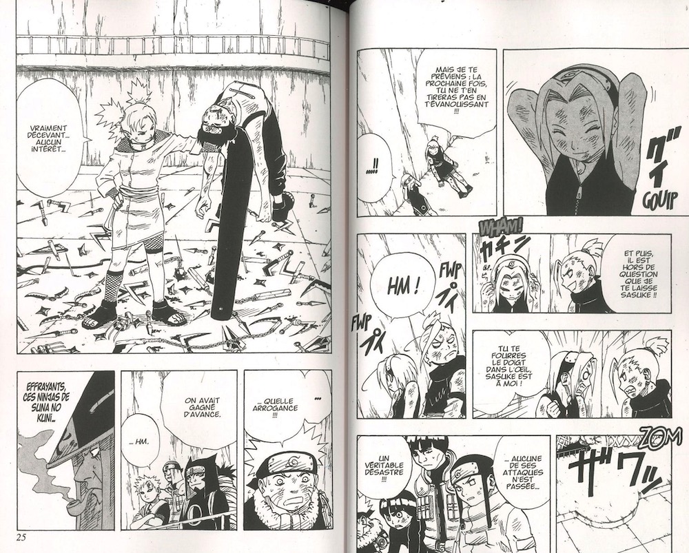 La tension engendrée dans ses quelques pages sera telle que ce duel éclipsera tous les autres jusqu’à cette fameuse confrontation (si si, même celle où notre jeune héros combattra Kiba !) Ces divers duels auront néanmoins l’intérêt de nous présenter finement les principaux ninjas qui graviteront toujours autour de Naruto.