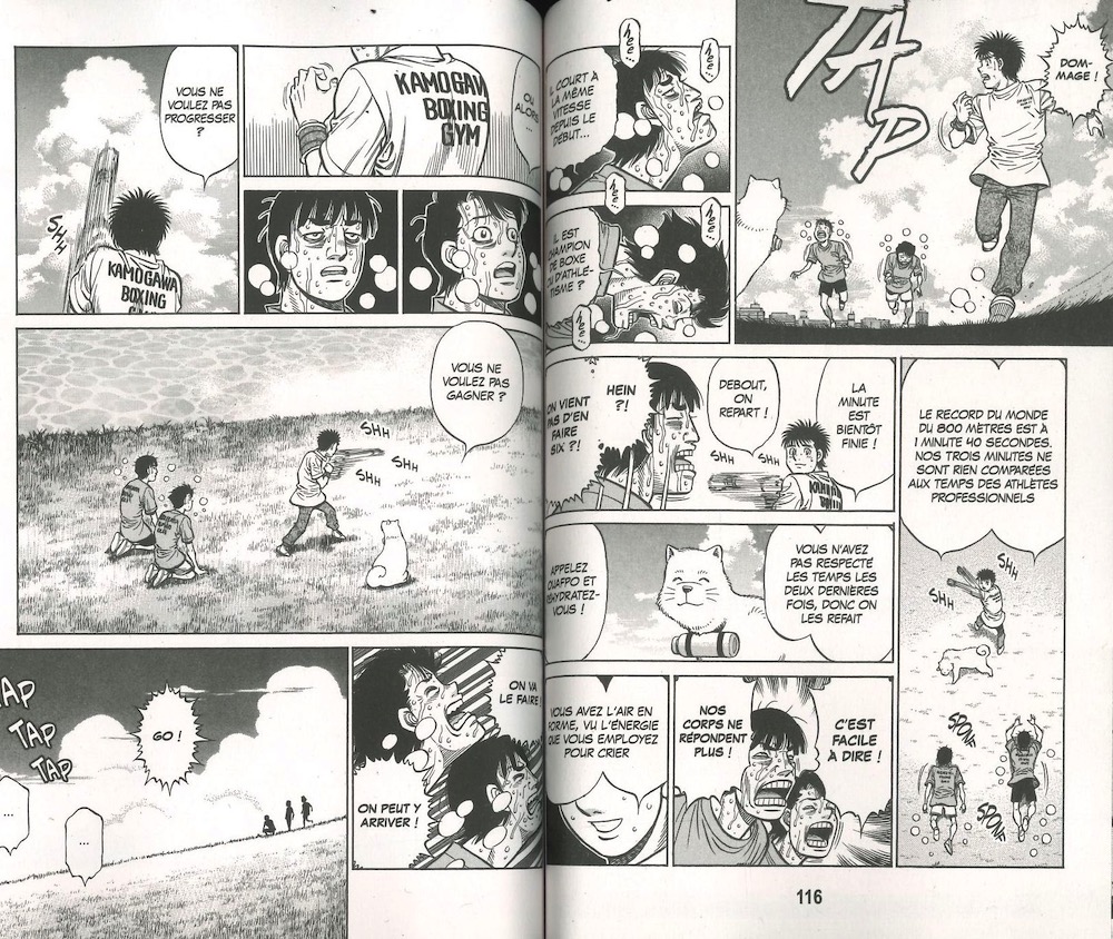 Ippo assiste Takamura lors de sa confrontation, aux côtés de leur coach de toujours. Cependant, alors que notre jeune retraité forcé tente de percer la technique utilisée par l’américain et veut en faire part au coach, Takamura refuse d’écouter celui qui ne remontera plus jamais sur un ring… Décidément, le pysché développé par l’ami George (Morikawa, le mangaka) sur cet atypique personnage fait toujours mouche : une machine de guerre invincible ayant un égo surdimensionné qui lui donne cette carapace dédaigneuse et que l’on se plait tellement à maudire tant elle parait infracassable…