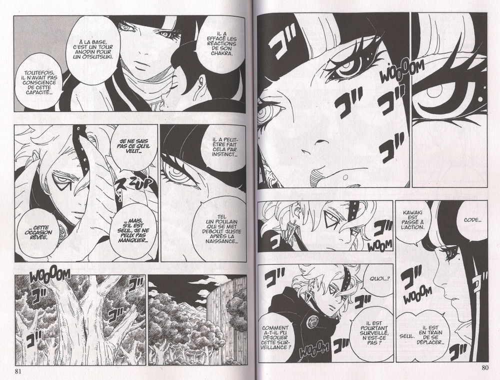 En proie au doute sur sa condition d’ « invité à problèmes » dans le village de Konoha, Kawaki peine à trouver sa place. Il est aussi taraudé par la menace que sa présence fait régner sur Konaha : Code peut surgir à tout moment aux différents endroits qu’il a marqué lors de son précédent passage. Et si la solution pour Kawaki était de tout simplement « disparaitre », effacer son chakra pour partir seul, loin ? De cette manière, l’Hokage ne risquerait pas sa vie pour lui en cas d’attaque ?!?