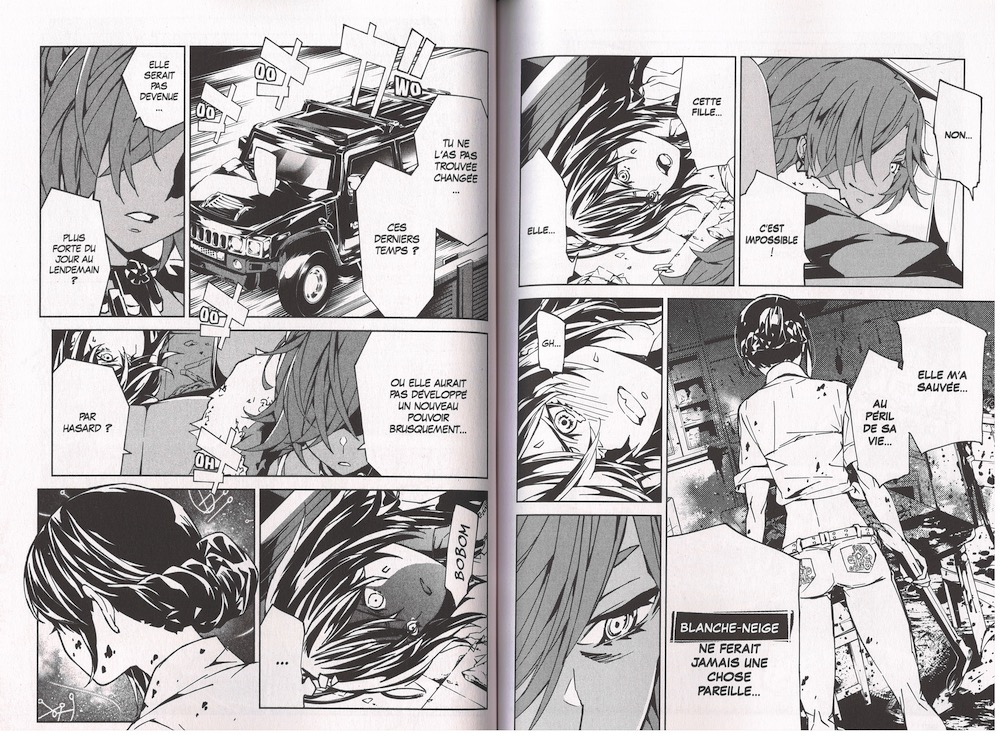 En tout cas, dès la première case, l’auteur en met plein la vue à ses lecteurs avec la suite du massacre dans l’hôpital, combat opposant les troupes de Cendrillon à Blanche-neige ! Les traits sont vifs, incisifs, nerveux, donnant beaucoup de relief à l’action.