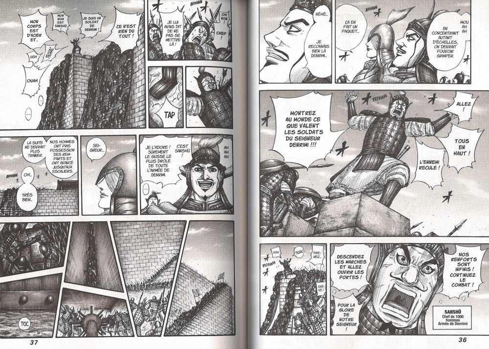 De son côté, le grand Général Ousen découvre une incroyable muraille longue de 12,5km et stoppant net son avancée en territoire ennemi !? Pire même : imaginée par Riboku, celle-ci se rattache à son extrémité à une autre grand muraille existant déjà plus au Sud, ce qui porte cette défense à une longueur totale de 100km de long et empêchant toute incursion par le Sud !