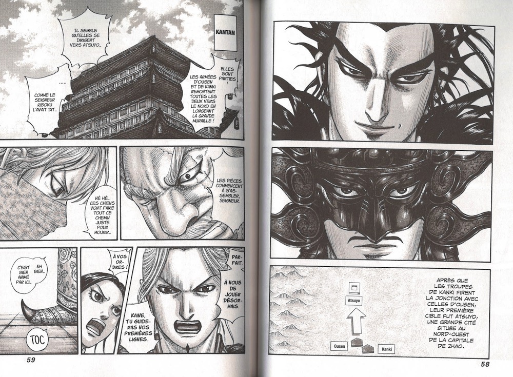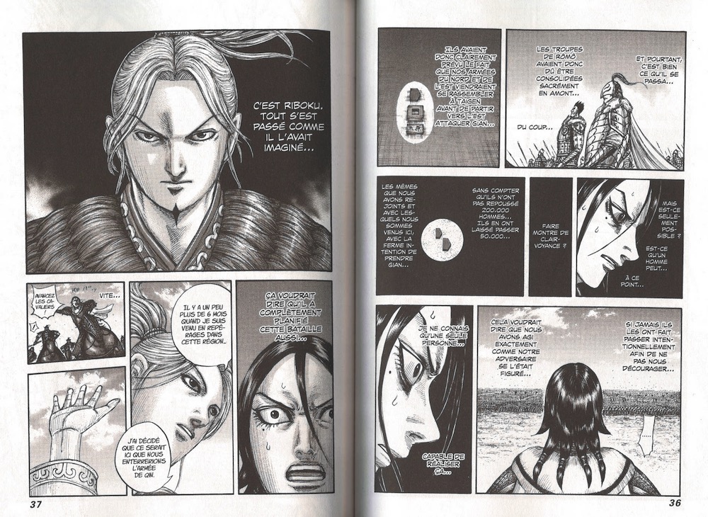 Kanki ordonne en retour de décapiter plusieurs dizaines de milliers d'ennemis. Apprenant cette nouvelle, Ei Sei, Roi de Qin, se hâte de le rejoindre pour le rappeler violemment à l'ordre. Du côté de l'État de Zhaô, qui vient de subir un lourd revers, le stratège de génie qu'est Riboku s'apprête à revenir sur le front…