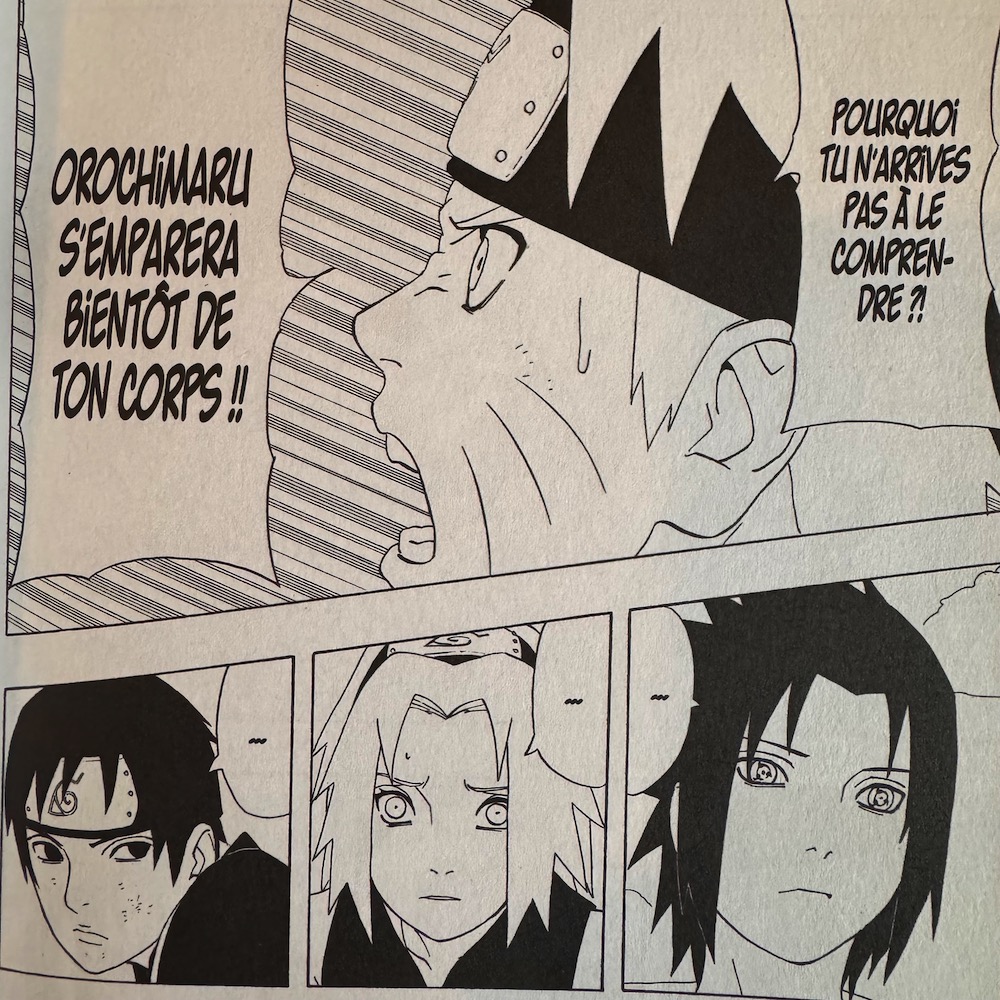 En revanche, on a du mal avec cette nouvelle « équipe Kakashi » : on a déjà parlé du charisme d’huitre Saï dans notre chronique précédente, mais on doit se plaindre aussi de l’anesthésiant chef Yamato…. Rien que son regard nous donne envie de dormir…. Avec son seul œil, Kakashi en imposait bien plus…. Réellement décevant de voir que l’auteur ne parvient pas à renouveler correctement le mentor de l’équipe et Sasuke.
