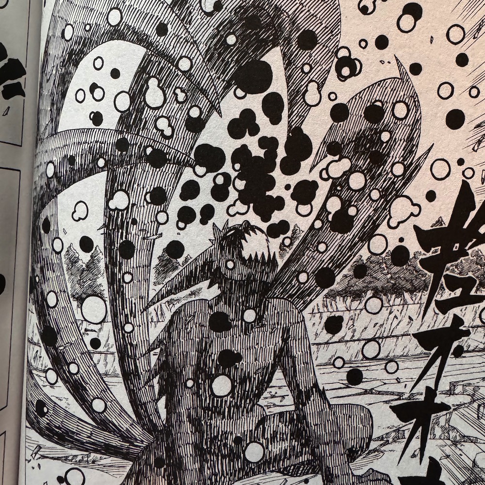 Laissons donc-là ces 2 erzats de copie-papier, pour applaudir les scènes de combats entre notamment « Naruto-Kyûbi vs Orochimaru » ! Plus qu’un combat entre ninja, c’est un duel fratricide entre deux monstres que nous assistons dans ces chapitres. Du grand Art, qui se soldera par une défaite inattendue…