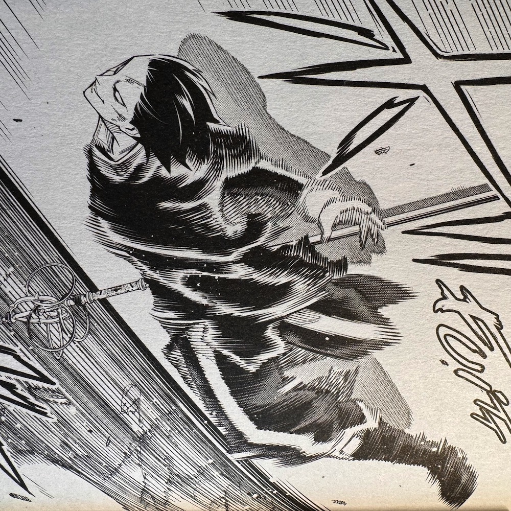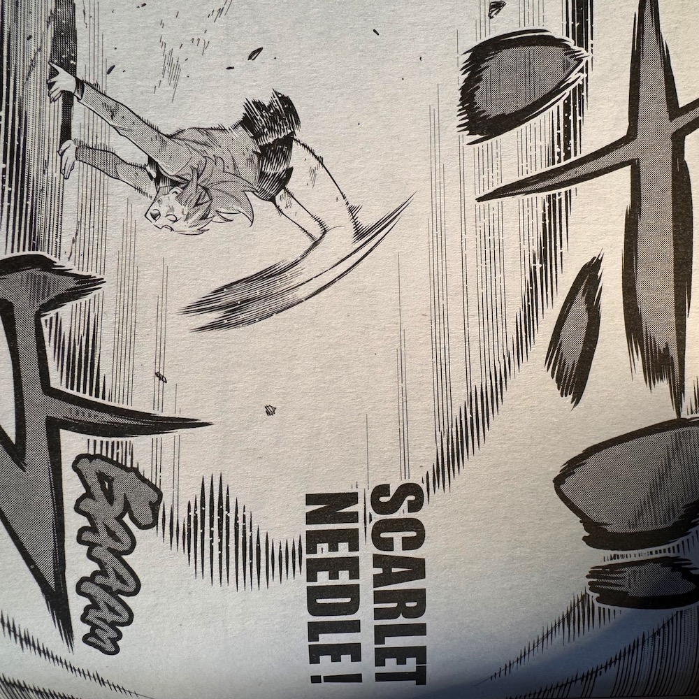 Un exemple parmi d’autres est l’apparition de la God’s Cloth : inspirée évidemment du cultissime manga « Saint Seiya », on ne s’attendait absolument du tout à voir un tel artefact apparaitre dans Demon Slave, ni quelques pages plus à voir une attaque spéciale intitulée « « Scarlet Needle » ((attaque du chevalier d’or du Scorpion dans … Saint Seiya !)