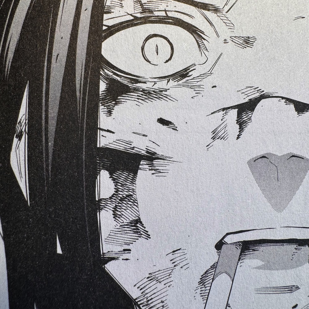 Allez, une pinaillerie, parce qu’il en faut bien une ;) : C’est quoi cette cigarette qui apparait/disparait d’une case à l’autre des lèvres de Yumeji ? On connait suffisamment l’œuvre de Takahiro pour savoir qu’il aime se montrer politiquement incorrect, voire anti-woke, mais alors on assume pleinement…