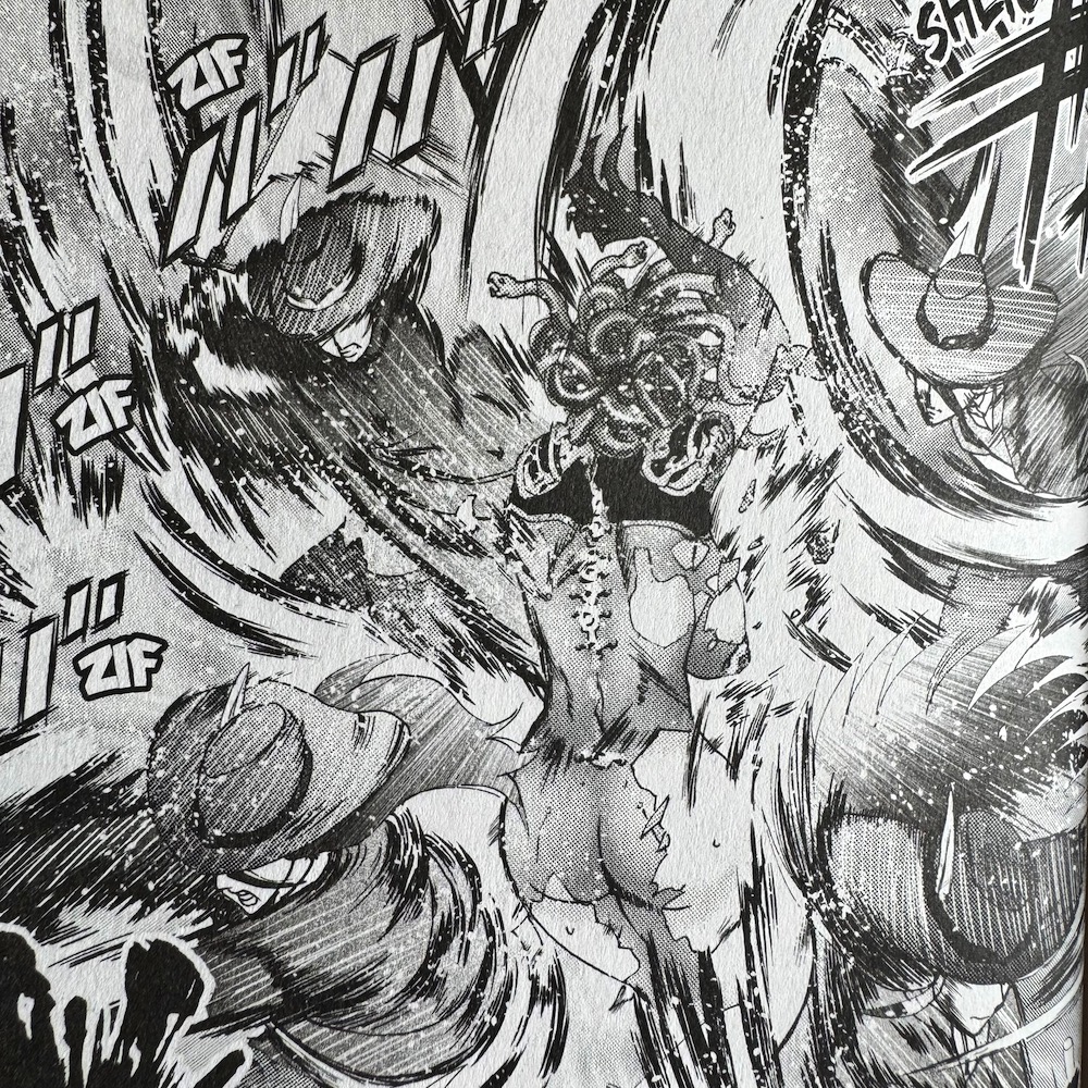 Avec ce nouvel Arc, le mangaka (Shun Matsuena) a haussé d’un coup le level : ses personnages ne sont plus dans la phase d’entrainements ou de gestion de petits conflits locaux, mais sont passés maintenant à des confrontations bien plus lourdes (détournement de satellites ou d’avions civils…). On a vraiment changé de paradigme là !