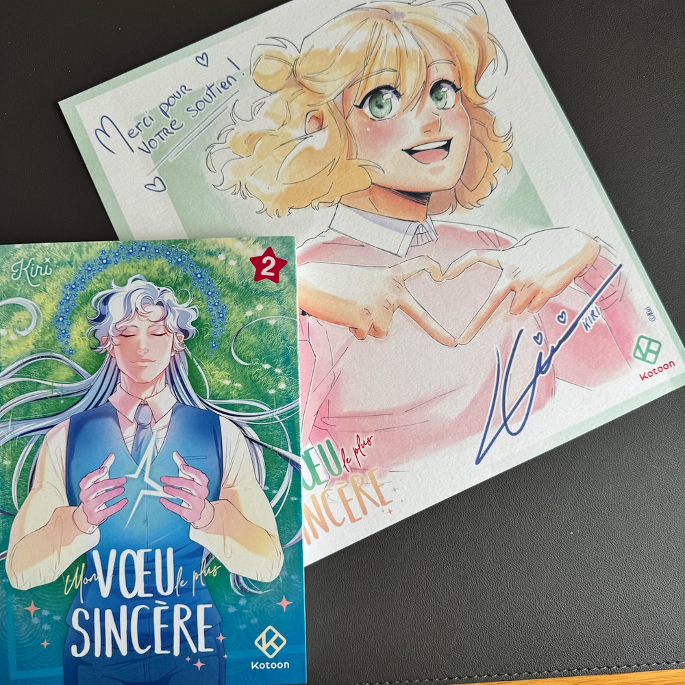 Kiri est une jeune autrice française qui aime illustrer et partager ses aléas du quotidien sur les réseaux depuis 2016. D'abord adepte des histoires courtes, elle découvre le webtoon en 2020 et décide de s'y consacrer avec la série Mon Voeu le plus sincère, sacrifiant au passage son avenir politique et sa domination du monde. (Bon, d'accord, c'est faux.) Elle aime dessiner, le JDR entre amis, les beaux bruns fictifs tyranniques, la cuisine et faire des parenthèses (ça, c'est vrai).