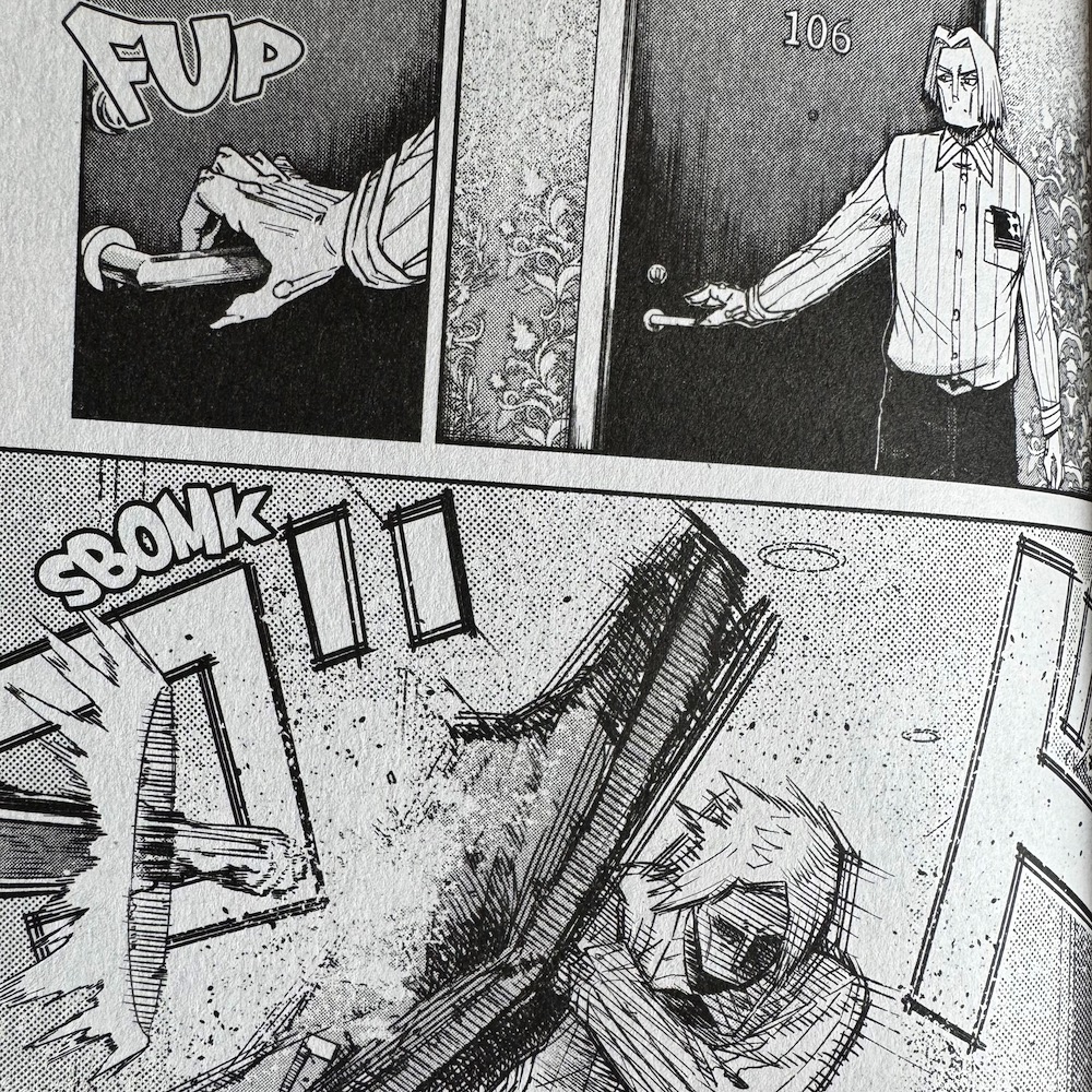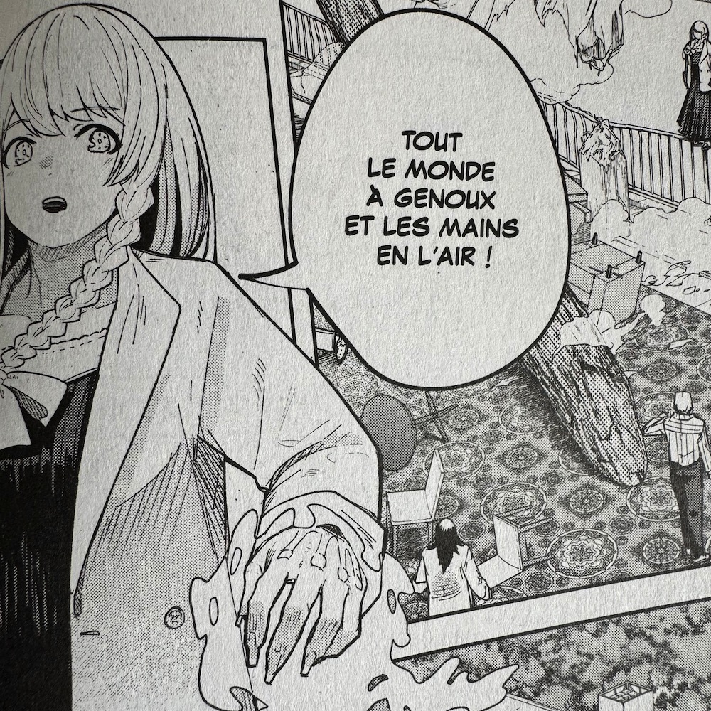 Certes, la seconde moitié de ce tome est centrée sur l’action, avec l’attaque impromptue sur le QG de Shôko Yoroibata, agent du gouvernement chargée de récupérer les os invisibles et le premier vrai combat de Yodomi.