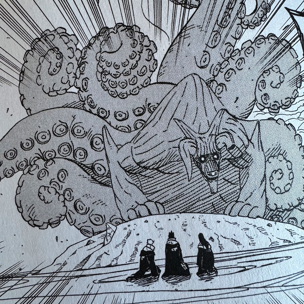 Si désormais le jeune Uchiwa désire anéantir tous les rêves de son frère ainé en s’alliant avec Akatsuki, l’auteur ouvre encore son scope sur le monde en dévoilant enfin les autres Kage et leur Bijû.