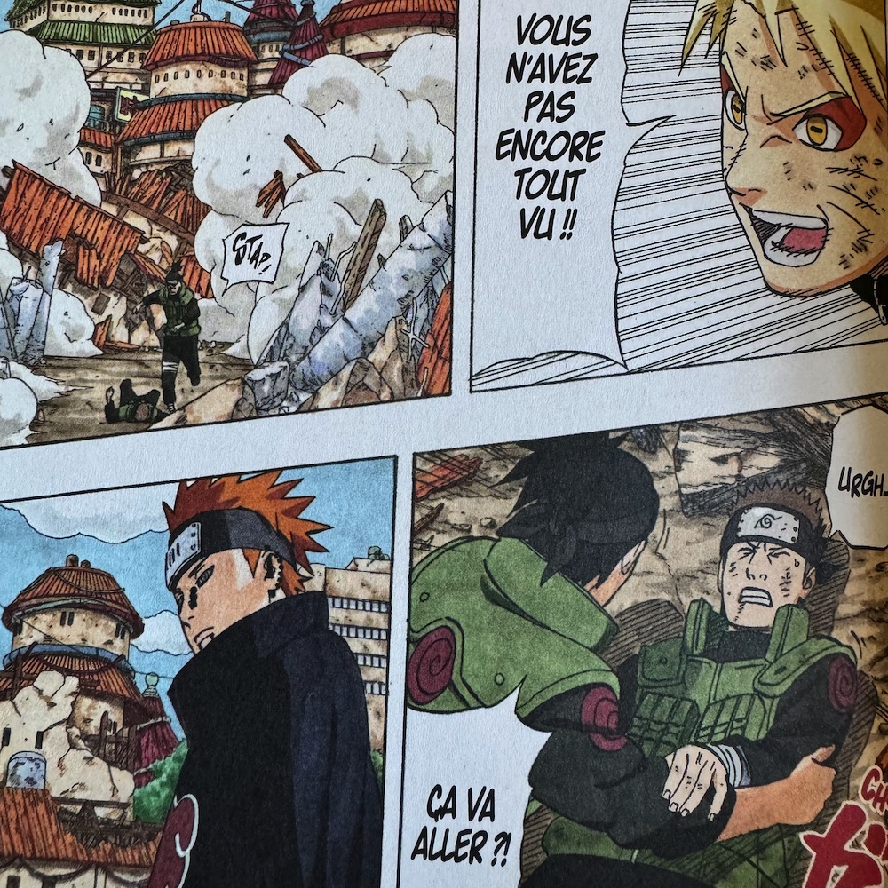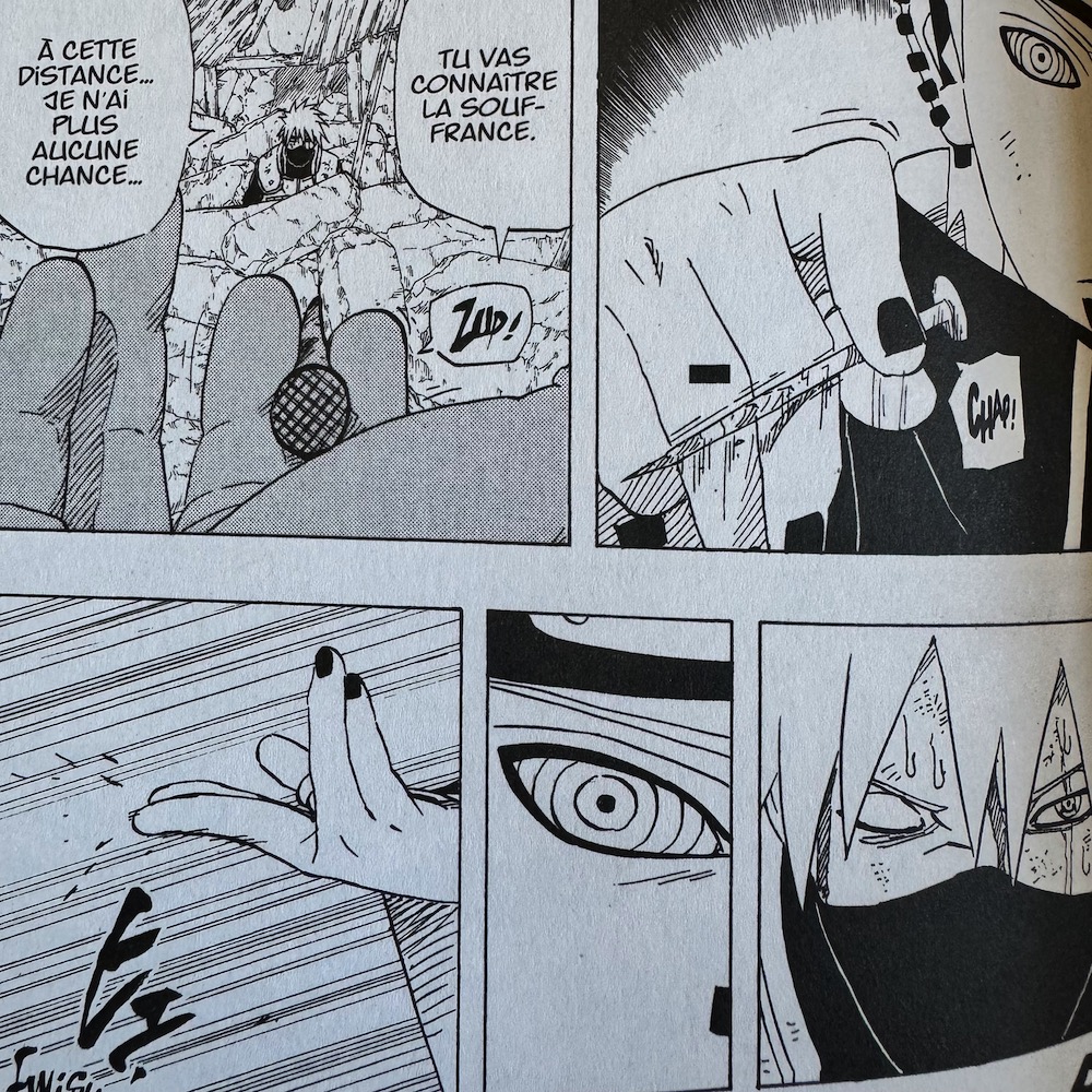 C’est aussi le moment où les 6 Pain décident d’une attaque frontale sur Konaha ! Kakashi tentera bien de les arrêter, mais que peut le loup blanc face à ces terribles ennemis qui ont exécuté le légendaire ninja Jiraya ?