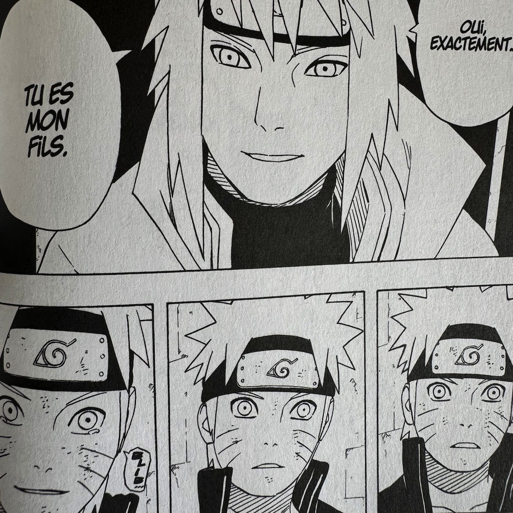 Viens aussi dans ce volume la révélation sur l’identité du père de Naruto, le 4ème Hokage, qui apparaitra dans la conscience de Naruto si un jour celui-ci devait éveiller la 8ème queue de Kyûbi, le démon-renard…. Et alors qu’on pensait en avoir assez pour notre argent, voilà que ce damné Mangaka nous assène le coup fatal en nous dévoilant l’identité du terrible ennemi qui a voulu détruire Konoha il y a 16 années en déclenchant la fureur du Bijû !