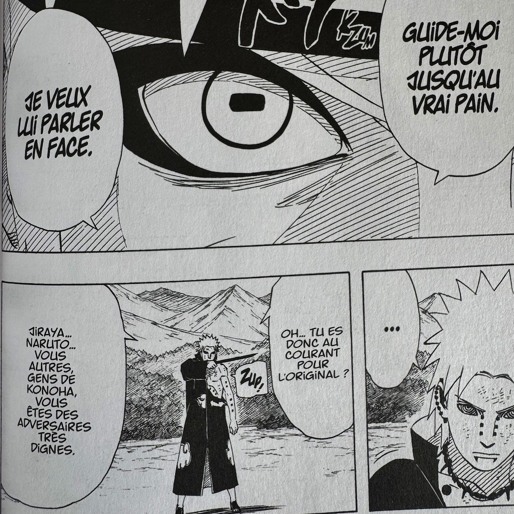 Ce sera pourtant dans le volume suivant que notre mangaka délivrera sans doute l’une des plus belles justification on nous dévoilant le point de vue de Pain… en nous confrontant ainsi un autre point de vue, diamétralement opposé et émanant du camp adverse, on ne peut s’empêcher de comprendre les motivations profondes de ce fantastique adversaire; il questionnera ainsi Naruto: