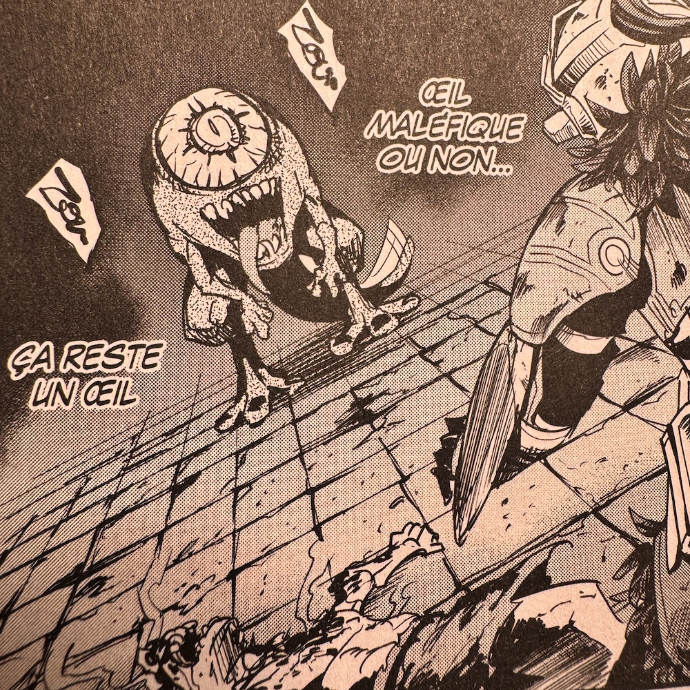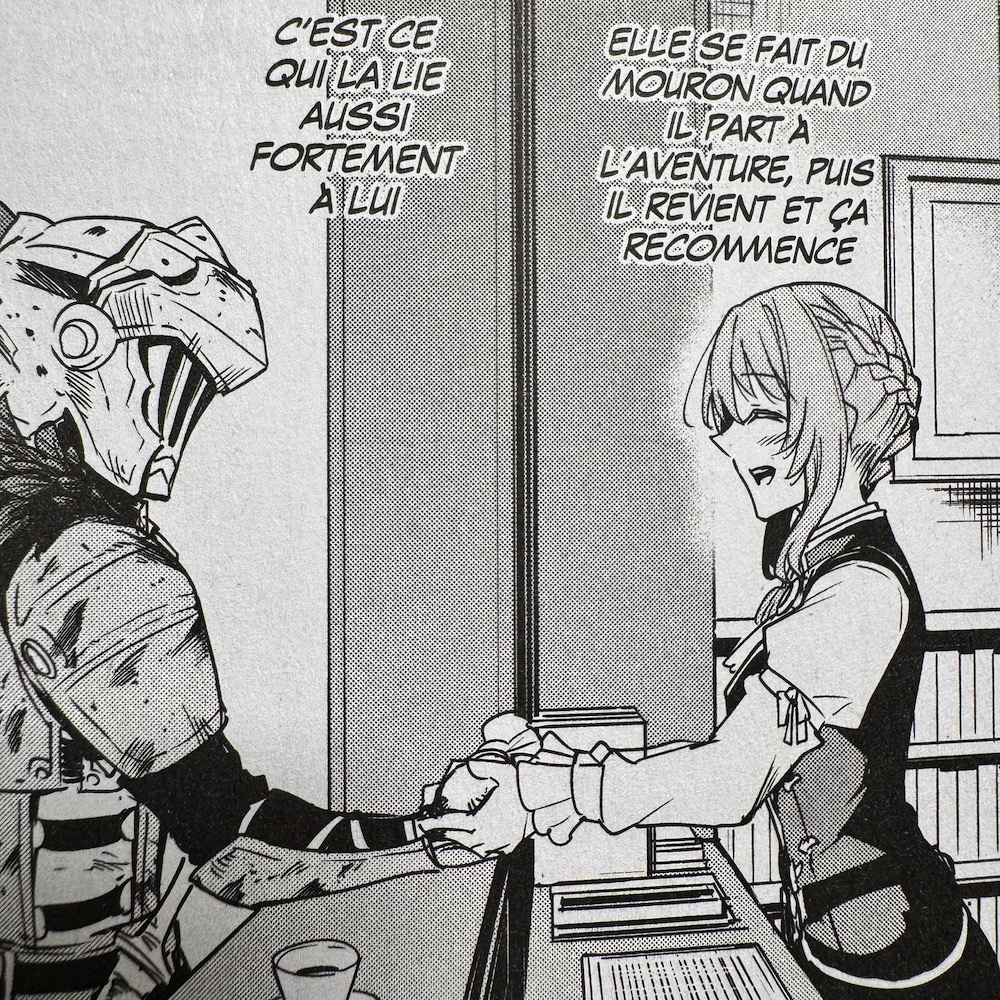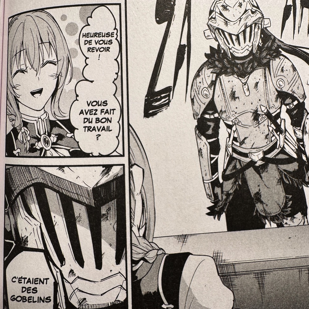 « Vends-moi une arme magique ! » À force d'insister, le Lancier finit par convaincre le forgeron de lui vendre une lance magique. « Une épée qui émet des flammes bleu pâle... Est-ce donc ça, une épée magique ? »En expédition dans des ruines envahies, le Crève-gobelins rencontre un gobelin en possession d'une étrange épée, avant d'entamer un combat féroce contre un Eil géant. Le regard de ce monstre est capable de percer les murs de pierre et de décomposer tout ce qu'il voit ! Mais une intervention inattendue viendra sortir le Crève-gobelins d'une situation devenue périlleuse...