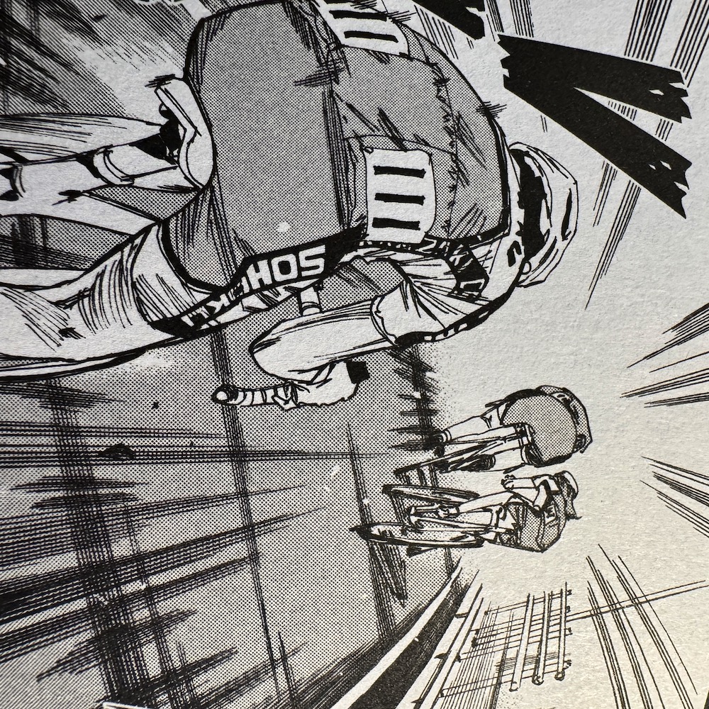 Et pourtant, la sauce prend directement et on retrouve bien tous les codes du Shônen dans « En selle Sakamichi ! » : le jeune prodige inconscient de son potentiel, les powerUps, le pouvoir de l’amitié, couplé au don de soi et entrainant au dépassement de ses capacités…