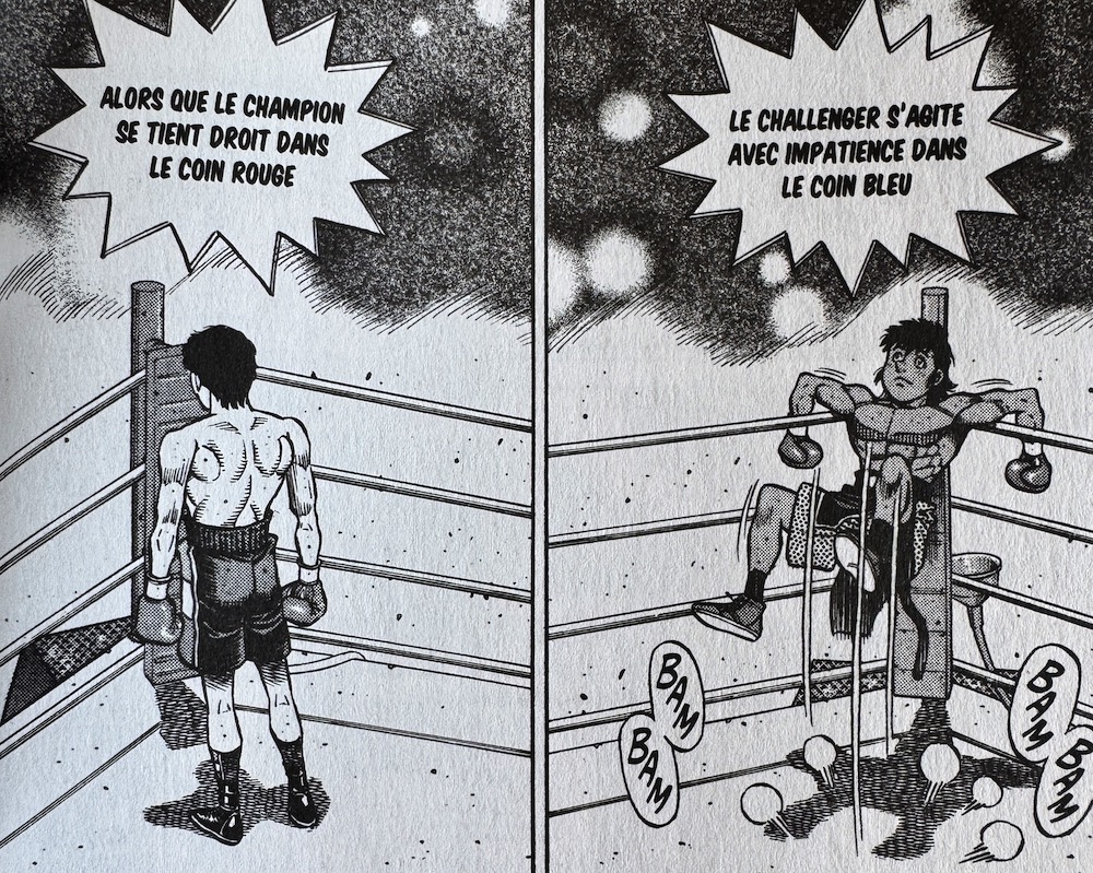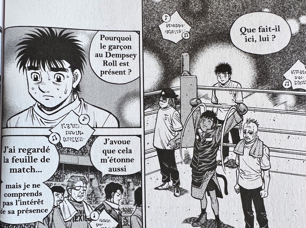 Voici une rencontre terriblement attendue par tous les afficionados de la série ! Si l’ami George (Morikawa, le mangaka de ce manga) as toujours placé son boxeur Takamura comme étant un adversaire hors de portée, il aura réussi aussi à placer Ricardo Martinez sur les mêmes cimes inatteignables…. Mais, par leurs différences de gabarit, jamais ces deux adversaires ne pourront se rencontrer.