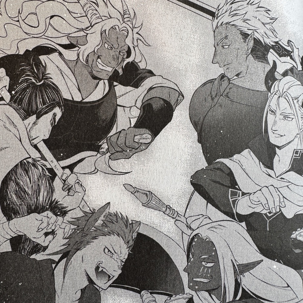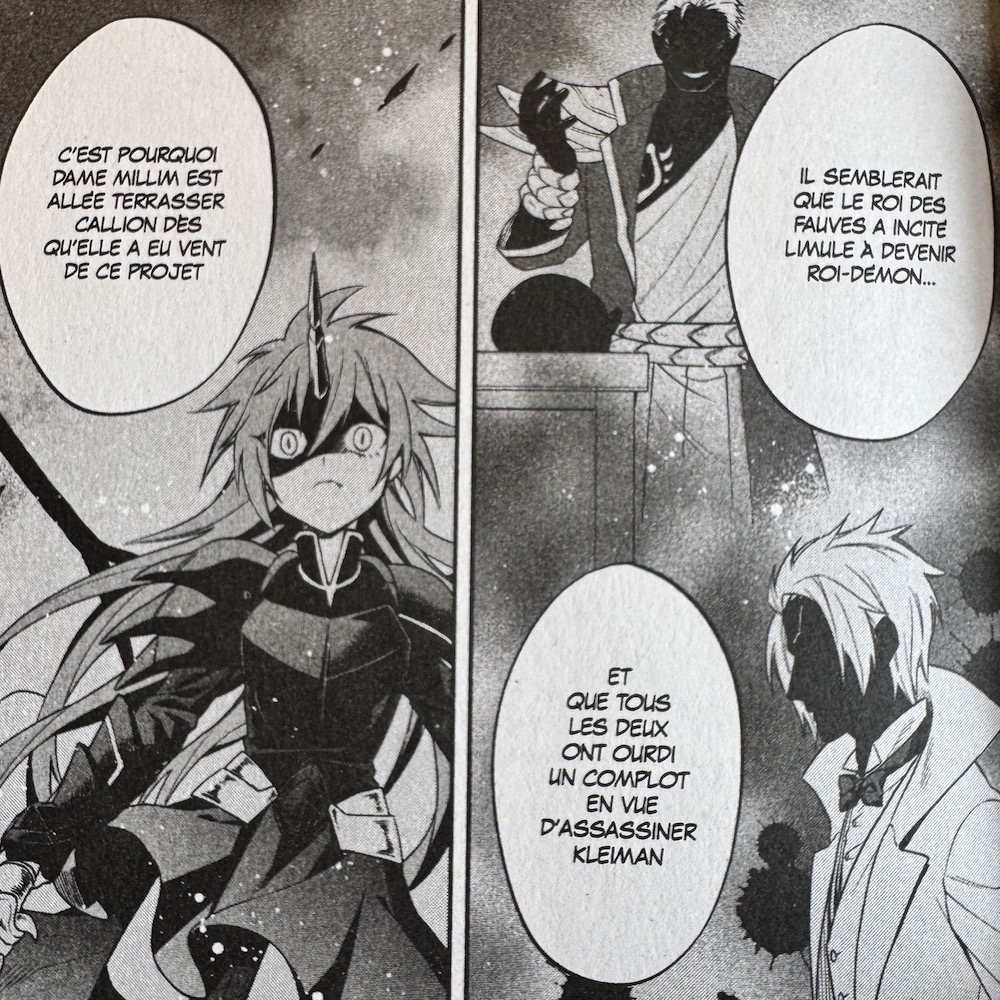 Depuis quelques tomes maintenant, Tae tono profite des interstices laissés ouvert dans la grande histoire de Limule (cfr. La série mère « Moi quoi je me réincarne en Slime »), pour augmenter son Lore et ajouter des éléments scénaristiques. Ainsi dans ce volume 6, on en apprends beaucoup plus sur la relation « Frey-Callion » et leurs implications face à Millim. On découvre aussi pourquoi Millim a accepté d’être considérée comme un pantin guidé par Kleiman… (ce n’avait jamais été très clairement expliqué dans la série mère).Un vrai plus donc pour qui est au faite dans la série principale.